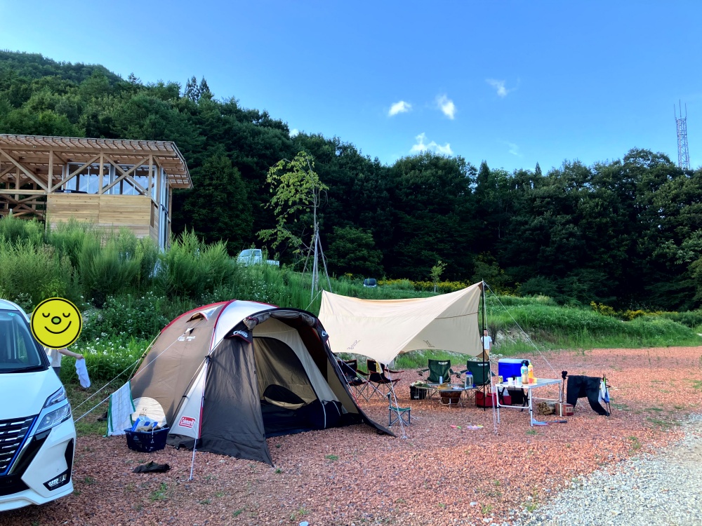 見晴らしは最高である一方、見ての通り、樹木など日光を遮るものは無いのでタープ必須です。(夏場は特に)
