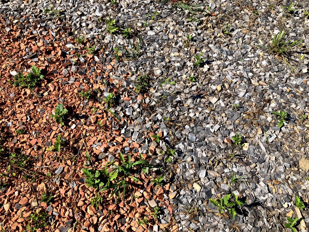 瓦とウッドチップの境目